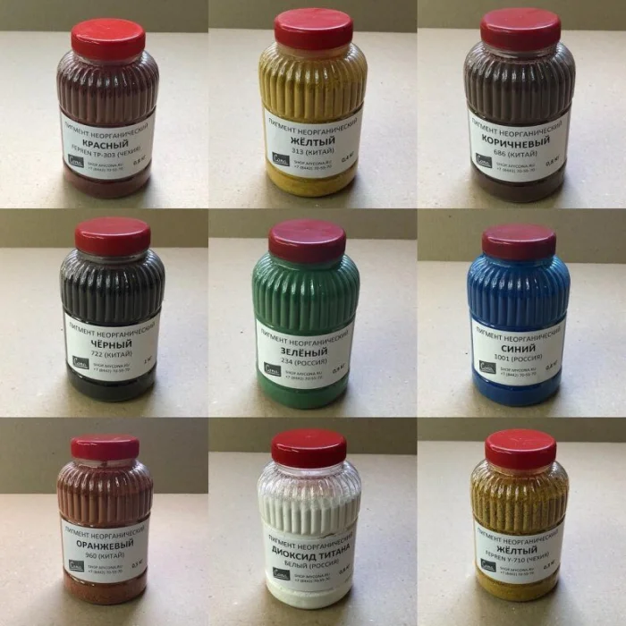 А что, если нужен цвет «морской волны» или «пыльной розы»? Легко! Пигменты, как и краски, можно смешивать. Комбинируя базовые цвета в разных пропорциях, можно получить практически любой тон из каталога RAL или NCS. Главное — делать это в сухом виде перед замесом и, опять же, вести точный учет пропорций для повторения результата.