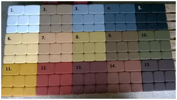 Безусловные лидеры по безопасности — пигменты на основе оксидов железа. Они натуральны, нетоксичны и стабильны. Многие синтетические и органические пигменты также безопасны после отверждения в бетоне, но при работе с ними (вдыхание пыли) нужна осторожность.