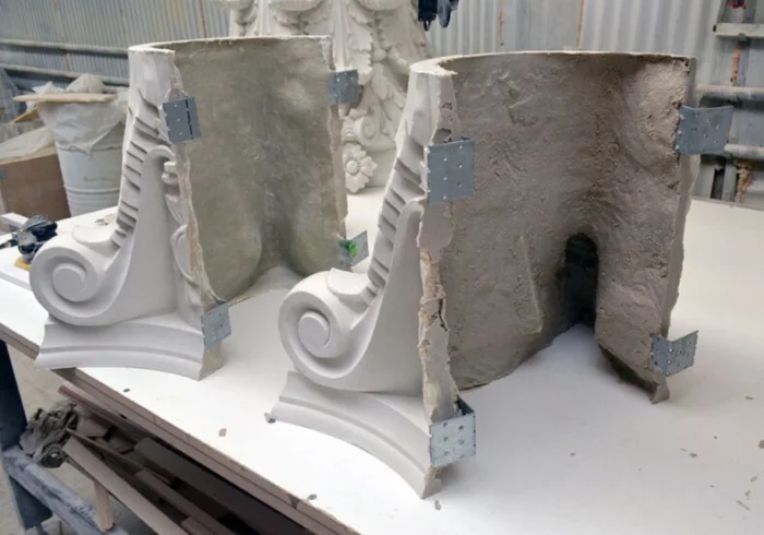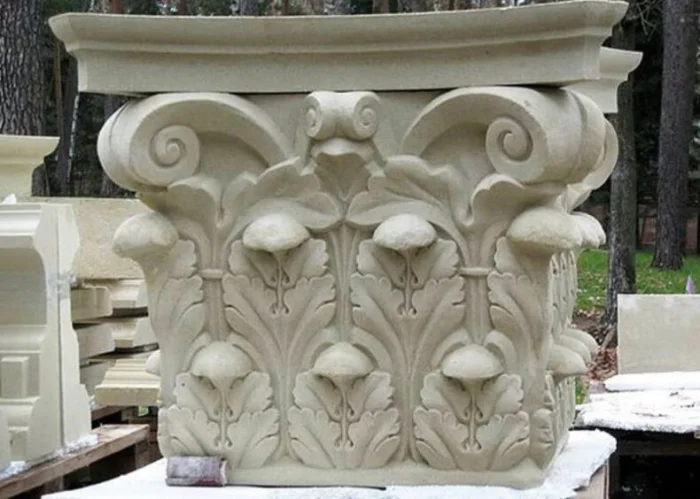 - Формование. Готовую смесь заливают в формы или опалубку. Из-за низкой вязкости некоторых составов она легко заполняет самые сложные рельефы.