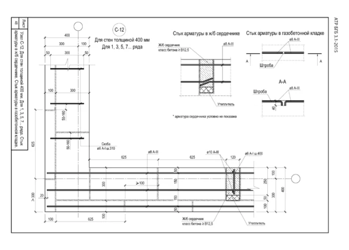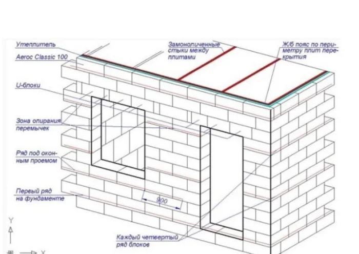 | Применение арматурных сеток в швах | В каждый горизонтальный шов между блоками укладывается кладочная сетка из проволоки 4-5 мм. | Для увеличения прочности кладки на разрыв, дополнительная связка блоков. |