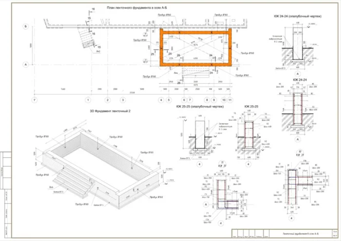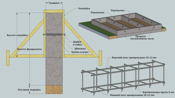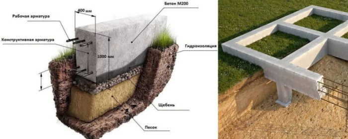 - Грамотный проект. Рассчитанная ширина ленты, диаметр и схема армирования, учёт всех нагрузок.
