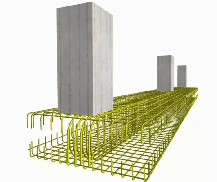 Бетон прочен на сжатие, но боится изгиба и растяжения. Чтобы он с этим справлялся, внутрь закладывают стальную арматуру. Это и есть армирование.