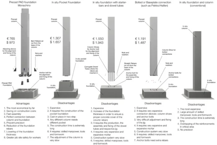В свежий бетон фундамента на расчётную глубину закладывают анкерные болты. После затвердевания бетона на эти болты через просверленные отверстия устанавливают опорную плиту колонны, наживляют гайки, выверяют колонну по уровню и отвесу, затем окончательно затягивают. Пространство между плитой и бетоном часто заполняют безусадочным цементным раствором (например, ВЦ).