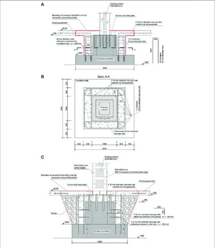 | Свайный | Колонна опирается на глубокие железобетонные, винтовые или буронабивные сваи, передающие нагрузку на плотные слои грунта. | Слабые, просадочные грунты; высокий уровень грунтовых вод; большие нагрузки (промздания, мосты). |