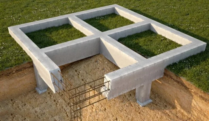 Классика для относительно хороших грунтов. Это бетонная лента, которая проходит под всеми колоннами каркаса, связывая их в единую систему. Бывает монолитным (заливается на месте) или сборным (из блоков). Его главный плюс — равномерное распределение нагрузки от нескольких колонн. Чтобы усилить, обязательно армируют.
