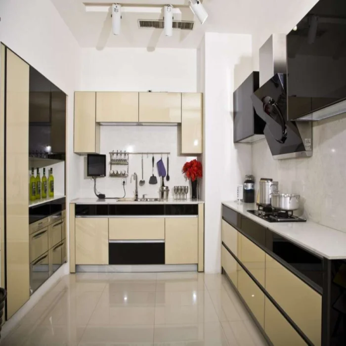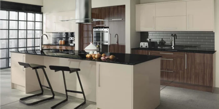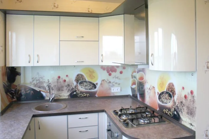 - Современность: стекло, искусственный камень, глянец, строгий пластик.