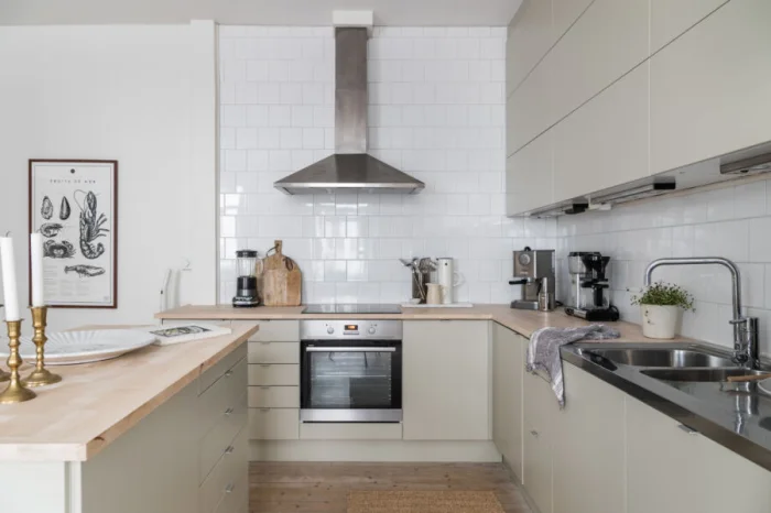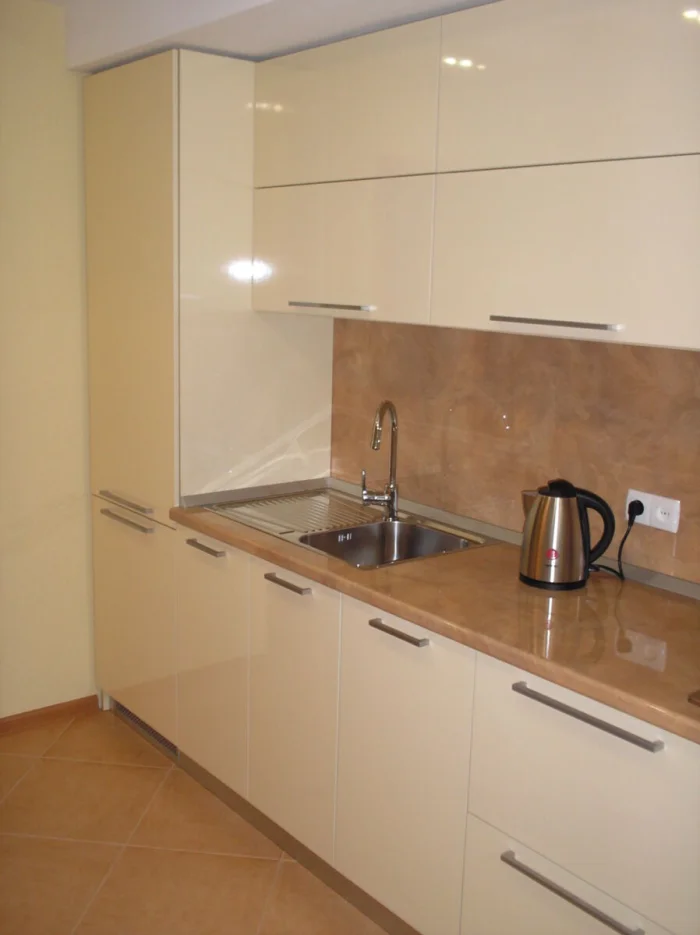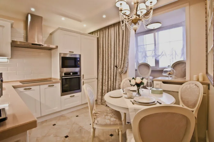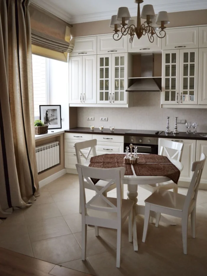 - Золотое правило дизайна: светлое расширяет, темное сужает. Хотите увеличить маленькую кухню – делайте ставку на светлый беж.
