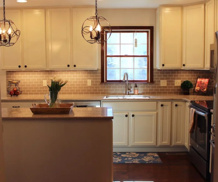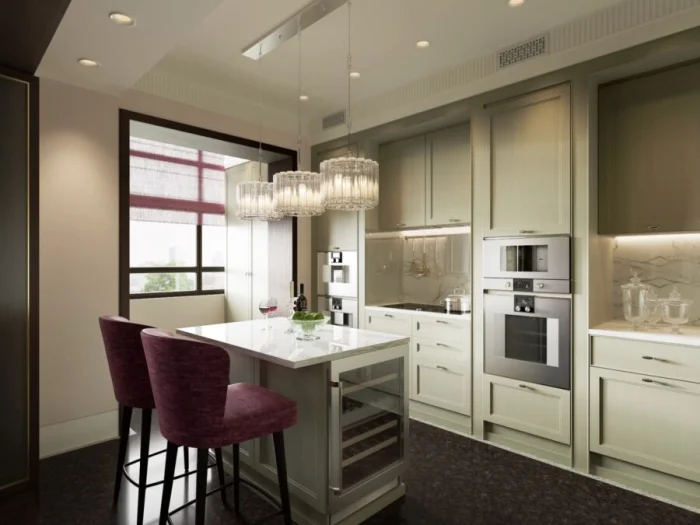 - Простор для маленькой кухни. Светлые бежевые тона визуально раздвигают стены, создавая иллюзию простора. Наше восприятие легко обмануть, и это прекрасно!