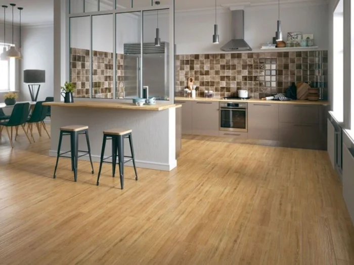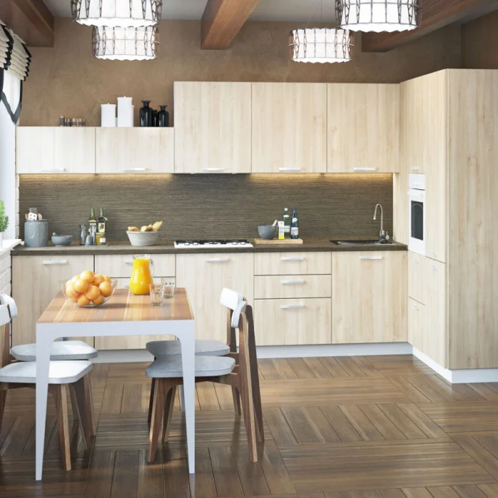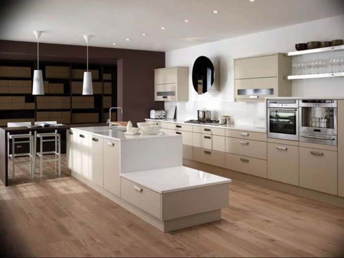 Пол в бежевой кухне – это не просто покрытие, а важный элемент пазла. Идеальные спутники для бежевого – природные оттенки: древесины ореха или дуба, светлого камня, песчаника.