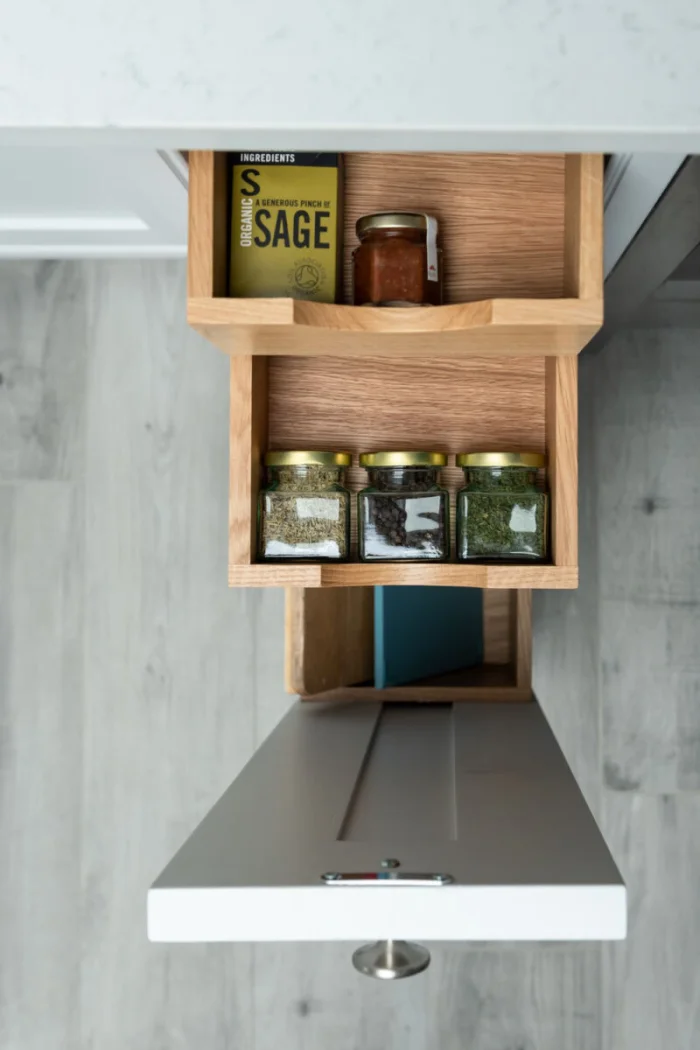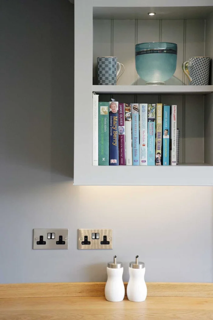 Добавьте несколько винтажных или просто необычных предметов: старые весы, банки для сыпучих, красивый поднос. Главное, чтобы их было легко протереть.