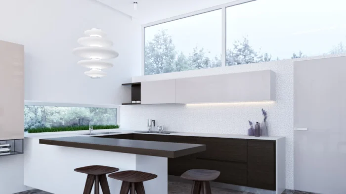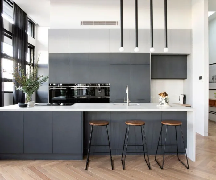 Барная стойка. Элегантный и современный способ зонирования. Идеально для квартир-студий. Она и разделяет пространство, и служит дополнительной рабочей поверхностью или местом для быстрого перекуса.