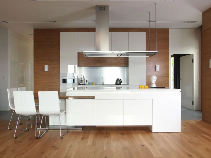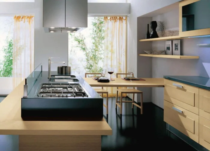 Островная. Это уже высший пилотаж, требующий простора. К любой из планировок (чаще Г- или П-образной) добавляется отдельно стоящий блок — остров. Он может быть варочной зоной, барной стойкой или дополнительным местом для хранения. Выглядит невероятно эффектно.
