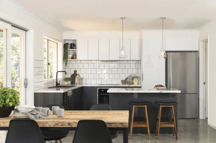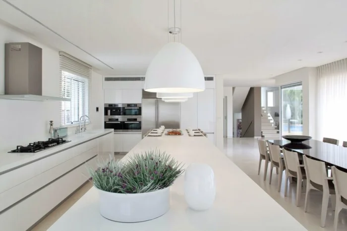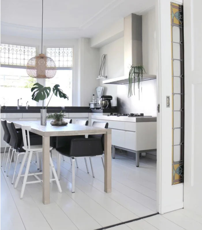 Когда с расположением мебели определились, пора делить пространство на функциональные зоны: рабочую и обеденную. Как это сделать красиво и ненавязчиво?