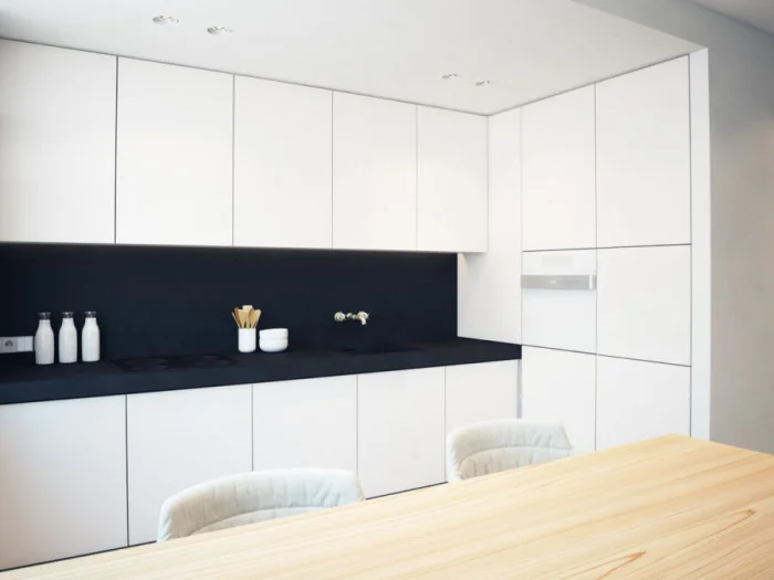 Линейная. Идеальный спаситель для узких и маленьких кухонь. Вся мебель и техника выстраиваются вдоль одной стены, освобождая противоположную сторону для обеденной группы. Просто и функционально.