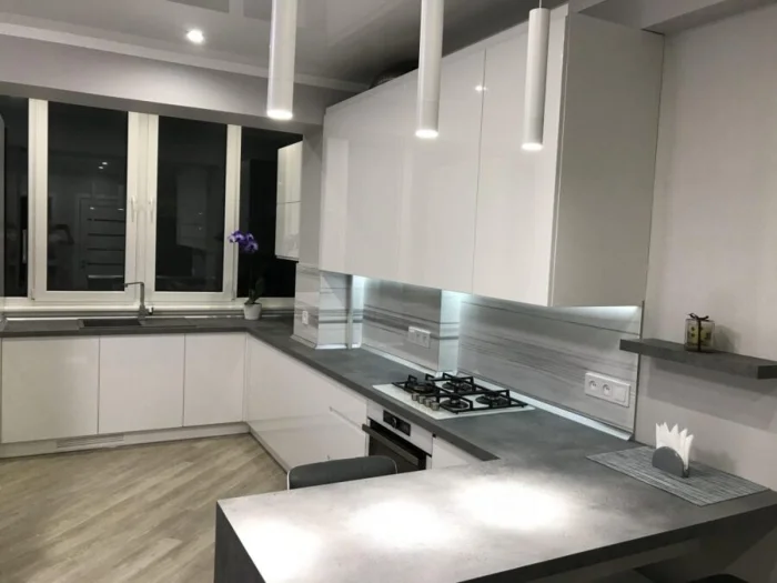 Свет — ваш главный союзник. Над рабочей зоной нужен яркий, направленный, но не слепящий свет. Идеальны светодиодные ленты под навесными шкафами или точечные светильники. А вот над столом создайте мягкий, теплый, атмосферный свет — подвесной плафон, бра, диммируемые лампы. Разный свет — разные настроения.