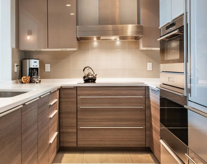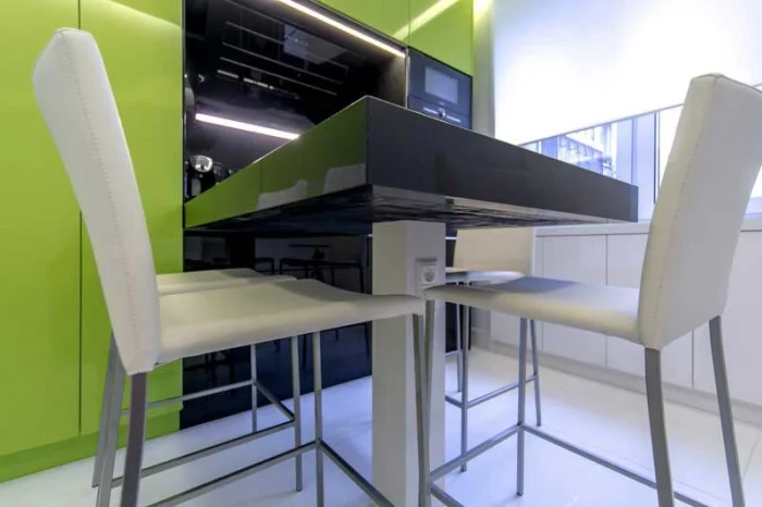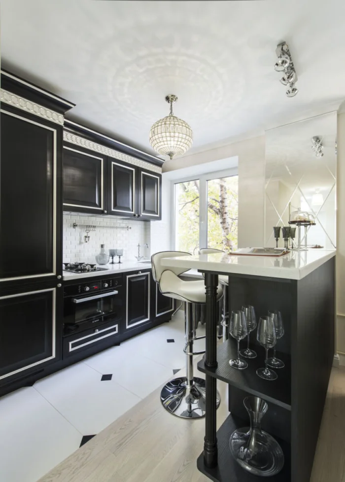 Современный стиль (модерн, минимализм). Идеален для визуального расширения пространства. Четкие линии, встроенная техника, скрытое хранение, монохромная или сдержанная палитра. Здесь царит порядок и ощущение простора. Такой дизайн может преобразить даже крошечную кухню-гостиную.
