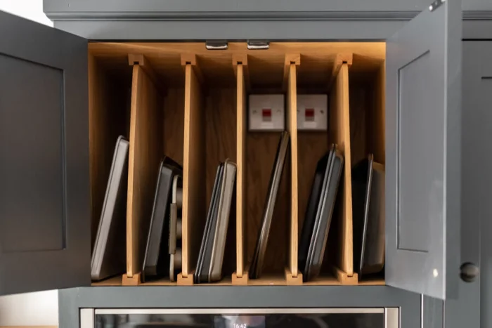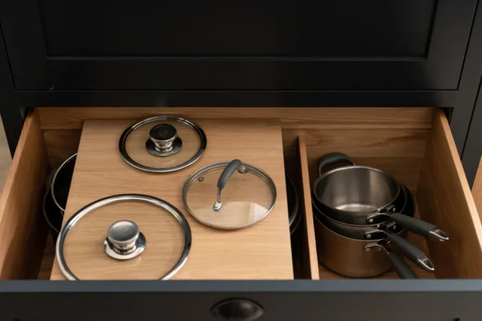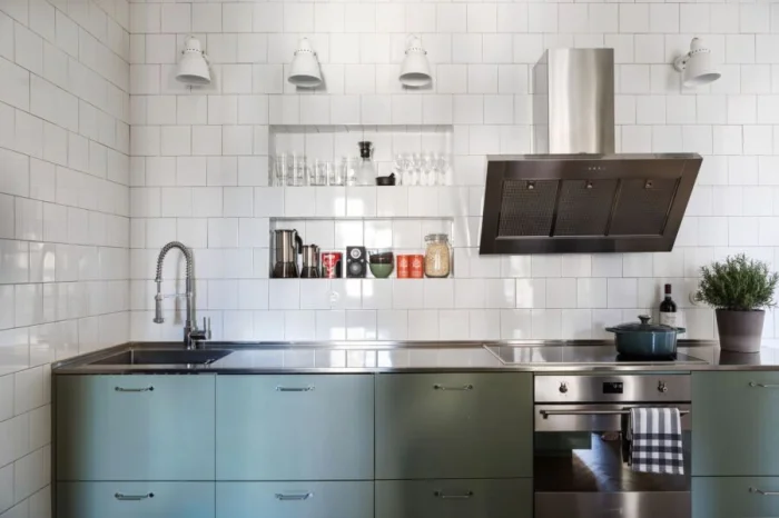 Шкафы бывают металлическими (более индустриальный вид) или деревянными (можно покрасить в цвет фасадов). Да, это дополнительные расходы, но они полностью меняют восприятие пространства.