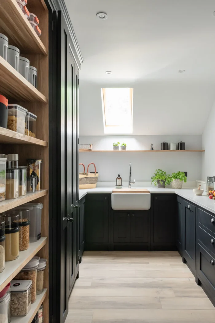 Даже узкий пенал-кладовка глубиной 30 см способен совершить революцию в хранении. Туда можно убрать запас продуктов, мелкую технику, бытовую химию. Освободившиеся полки на кухне скажут вам спасибо.