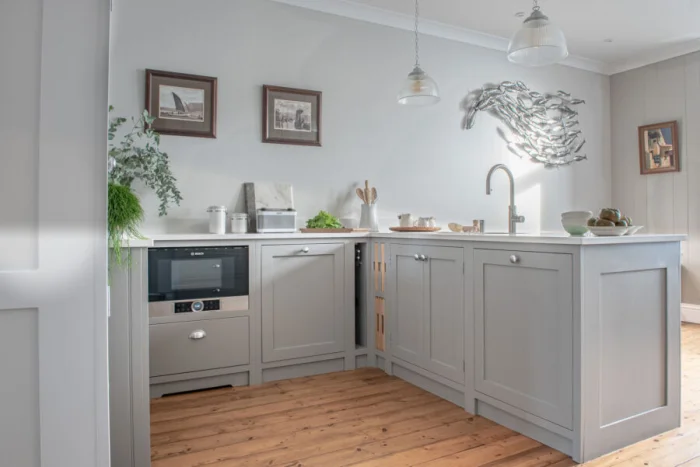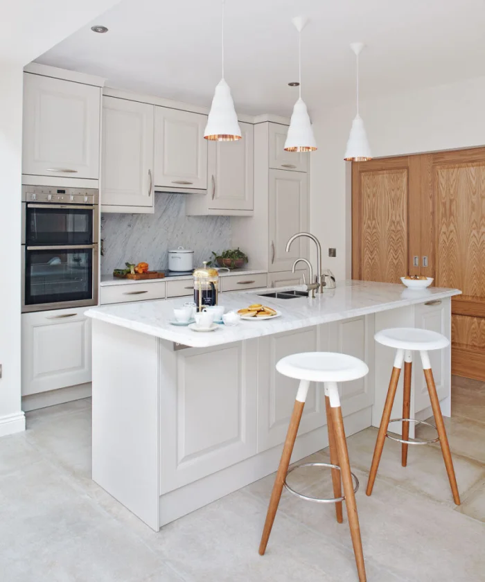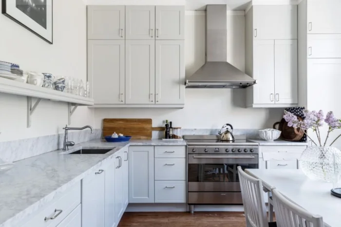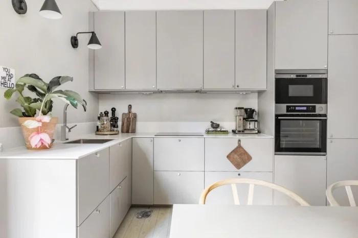 Это не скучно, это физика. Светлые тона (теплый белый, слоновая кость, светло-серый, бледно-бежевый) отражают свет и визуально «раздвигают» стены. Сочетайте их с текстурой натурального дерева на столешнице или фасадах – и получите одновременно воздушное и уютное пространство.