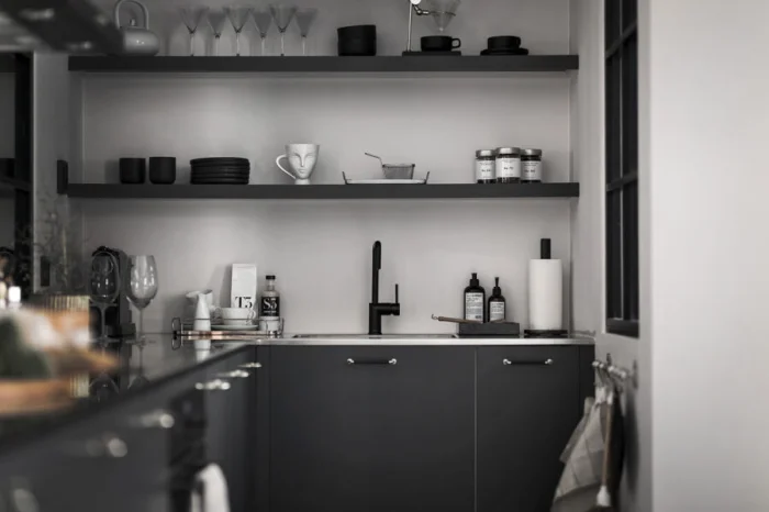 Это не просто стиль, а философия. Речь о том, чтобы собрать кухню не из готового гарнитура, а из отдельных предметов: комода, буфета, открытых полок, острова (если поместится). Это создает уникальную, «собранную» атмосферу.