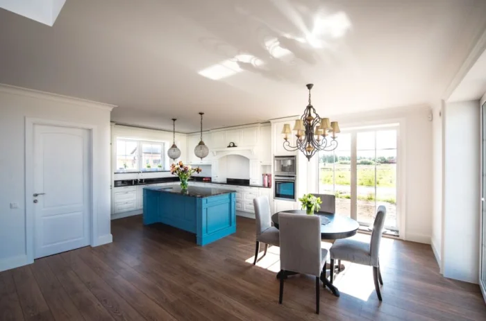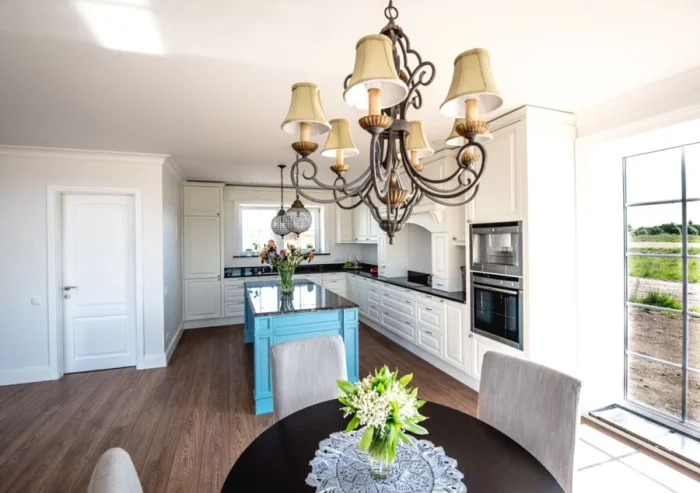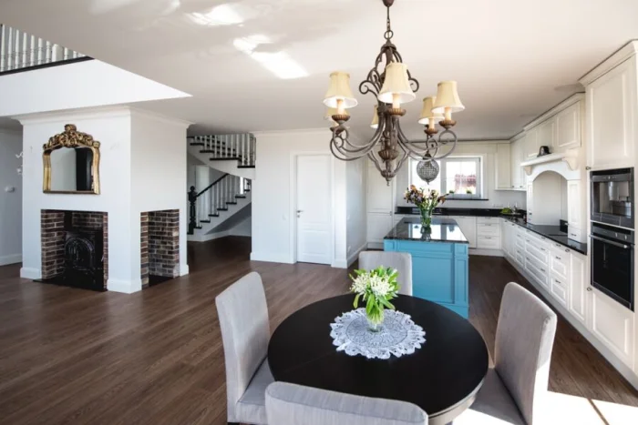 Открытое пространство, кухня-гостиная, остаётся в тренде. Это не только модно, но и практично: так жизнь семьи становится более объединённой и коммуникабельной.