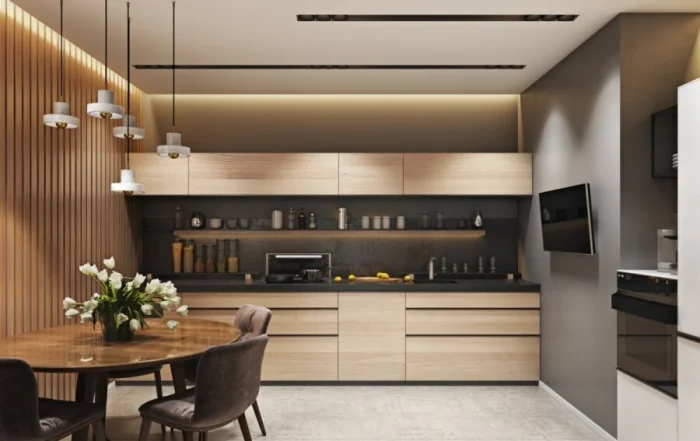 Ничего лишнего. Только функциональные предметы, чёткие линии и спокойная цветовая палитра. Девиз стиля: каждая вещь на своём месте и для чего-то нужна. Мебели — минимум, техника — встроенная, декор практически отсутствует. Идеально для тех, кто устал от визуального шума и ценит порядок и простор.