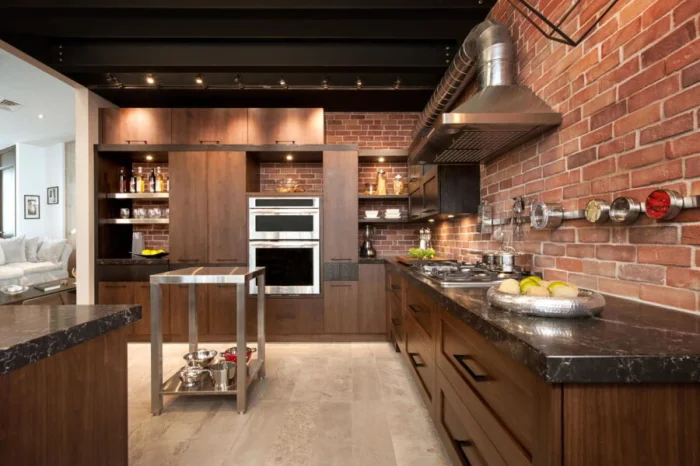 Это стиль для смелых. Сочетание грубоватой эстетики (кирпич, неоштукатуренные стены, открытые балки) с лаконичными формами. Он удивительно универсален: подойдёт и для маленькой кухни, добавив ей характера, и для просторного помещения, задав мощный урбанистический ритм.