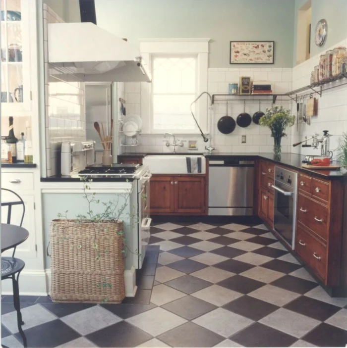 Очарование прошлого в современной обработке. Пастельные тона, ретро-холодильник (часто стилизованный), белый кафельный фартук, округлые формы мебели. Такой интерьер не выглядит старомодным, он излучает особый шарм и индивидуальность.