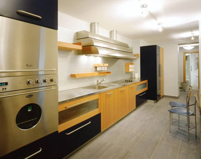 Продвинутое направление, где на первом месте — новейшие технологии и материалы. Акцент на стекле, дереве, гладких поверхностях. Металл используется дозированно. Здесь царят эргономика и чёткость линий.