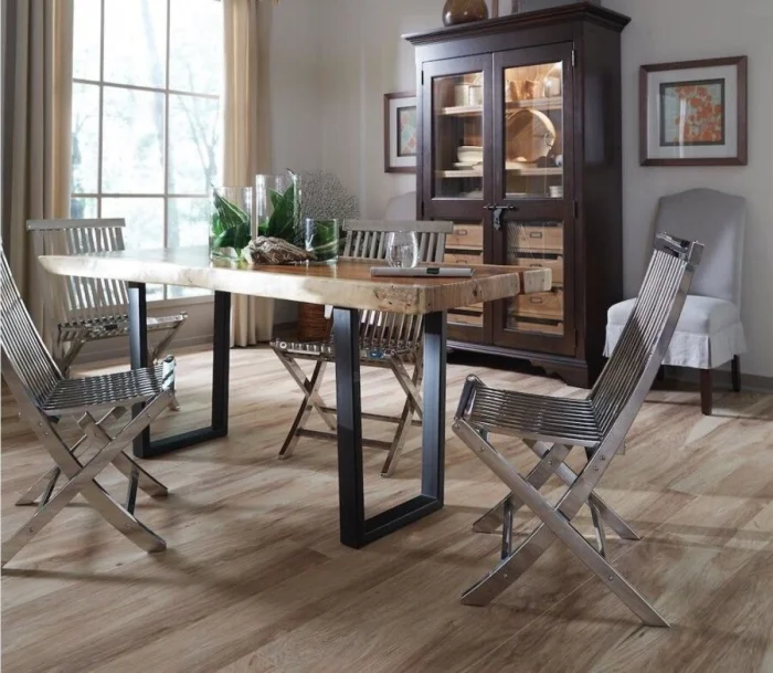 Идеальное решение для тех, кто не хочет загромождать пространство лишними стульями, но любит принимать гости. Стильные складные модели можно убрать в кладовку, а их спинки украсить яркими подушками, которые станут дополнительным акцентом.