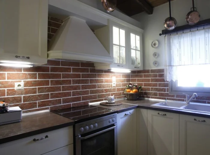Материалы-фавориты: кирпич (настоящий или качественная имитация), дерево с ярко выраженной фактурой, металл. Чем меньше «прилизаности» — тем аутентичнее.