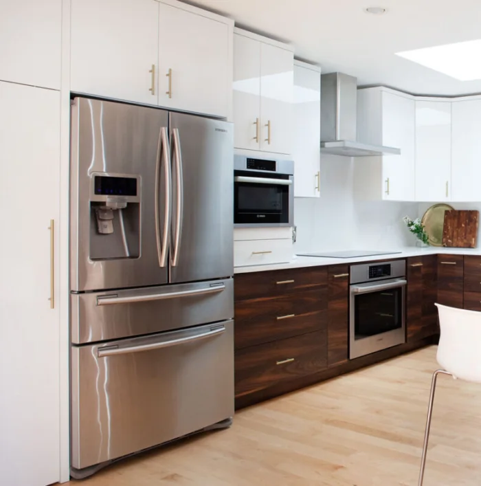 Тесные кухни в «хрущевках» – главная причина, почему их владельцы решаются на объединение. Но здесь вас может ждать сюрприз: стена между кухней и комнатой часто оказывается несущей. Полностью сносить ее – нельзя. Но можно проявить смекалку: оставить колонны, построить арку или широкий проем.