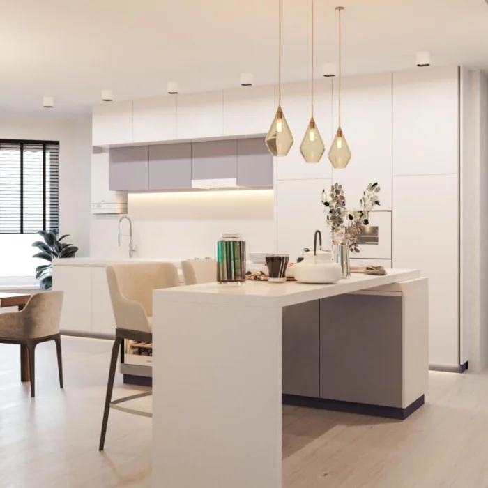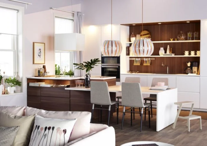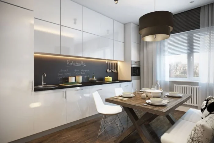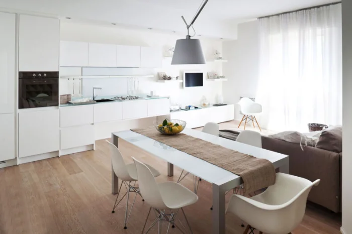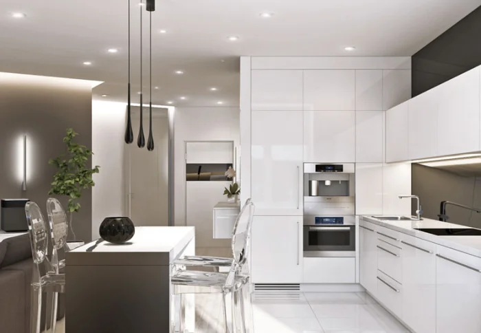 Внешний вид и мебель напрямую зависят от того, какую зону вы считаете главной. Любите готовить как шеф? Тогда центр мира – рабочая зона с мощной вытяжкой, вместительными шкафами и барной стойкой. Пусть гостиная будет ярким акцентом, а кухня – спокойным, функциональным пространством.