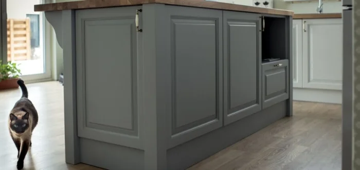 Особняком стоит тренд на светло-серые кухни. Графитовые оттенки в сочетании с белым — это мощный инструмент зонирования. Они создают прохладную, но очень уютную и стильную атмосферу.