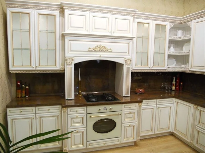 Мебель — только из массива дуба, ореха или вишни. Фурнитура — массивная, возможно, с элементами патины или рельефными узорами. Это инвестиция в уют на долгие годы.