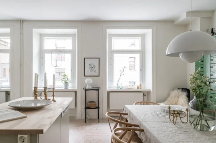 Светлая гамма работает на полную мощность, превращая даже скромное помещение в стильное и комфортное пространство.