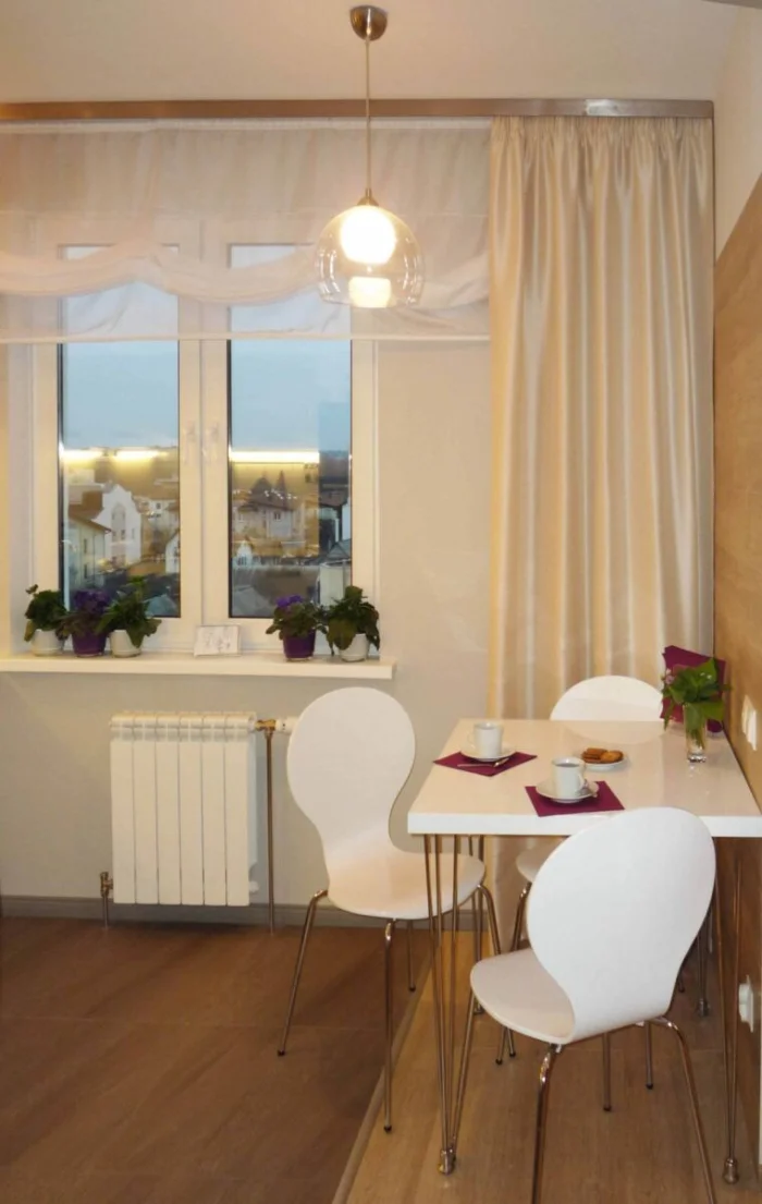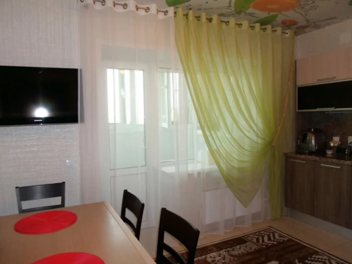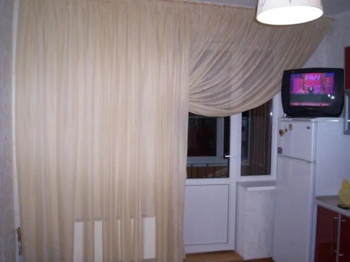 Отдельный квест — кухня с балконной дверью. Тюль здесь не должен превращаться в препятствие на пути к свежему воздуху. Идеально, если он будет маскировать дверную коробку, но при этом легко отодвигаться.