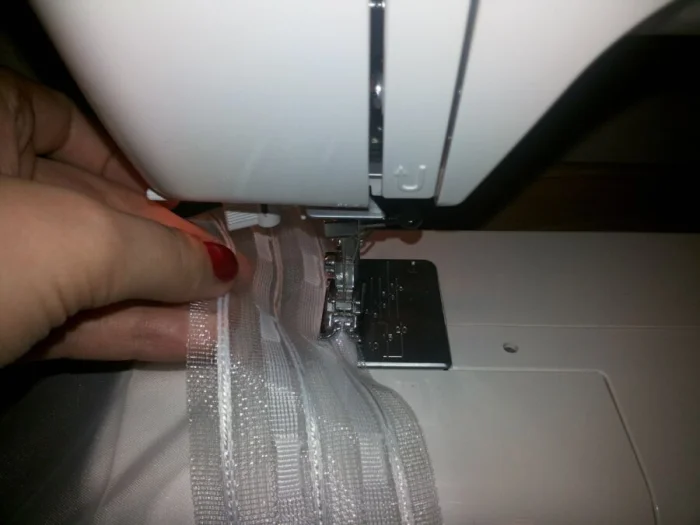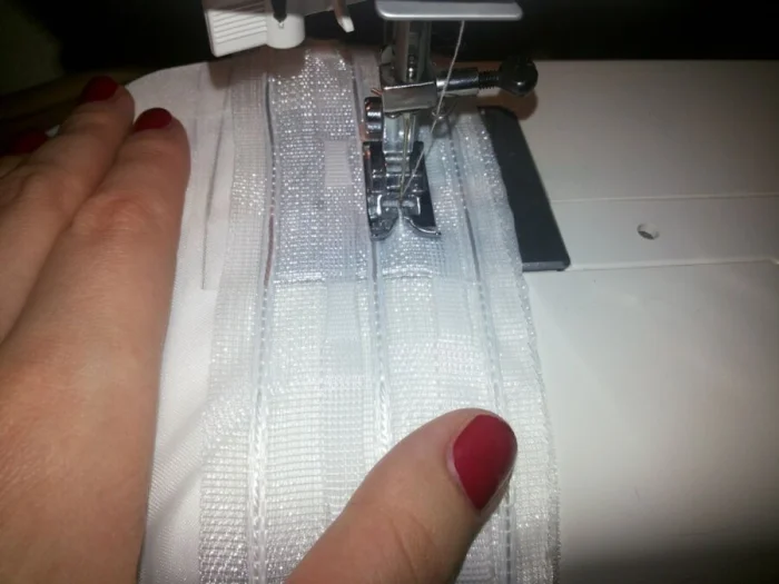 - Шаг 4: Обработка. Аккуратно подшейте боковые и нижний срезы. Верхний край обработайте с помощью шторной ленты (если будете вешать на крючки) или просто подшейте, чтобы вдеть карниз в кулиску.