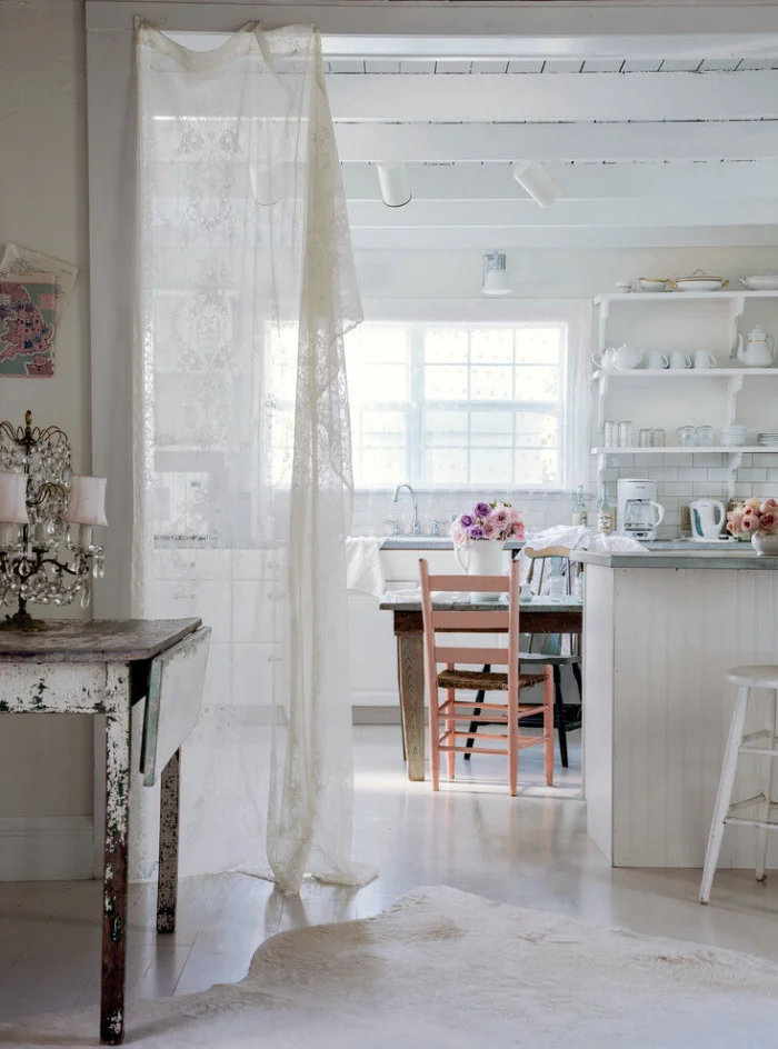 Традиционный фаворит — светлые, пастельные оттенки. Белый тюль, например, станет спасением для темной, северной кухни, буквально наполнив ее светом.