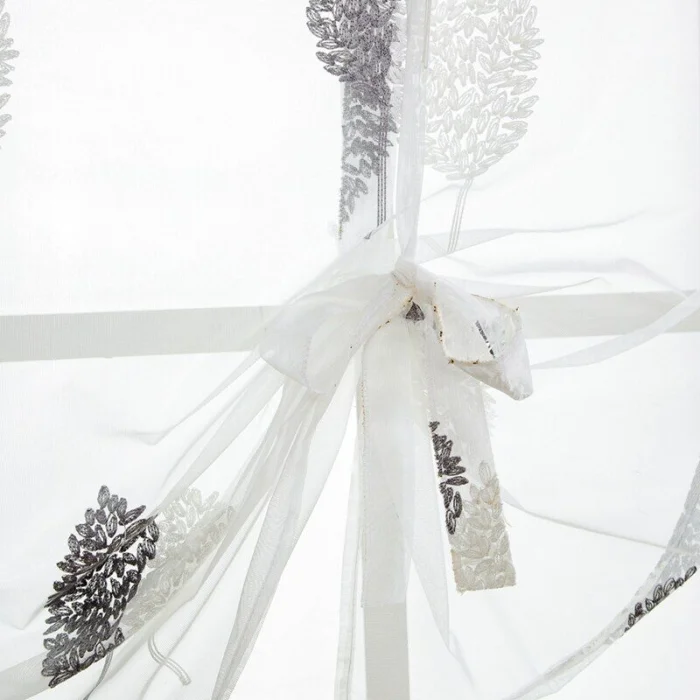 Для легких, воздушных гардин крепление лучше сделать максимально незаметным. А для плотного, фактурного тюля — превратить место крепления в декоративный элемент.