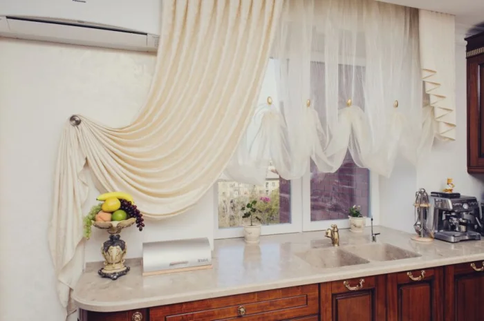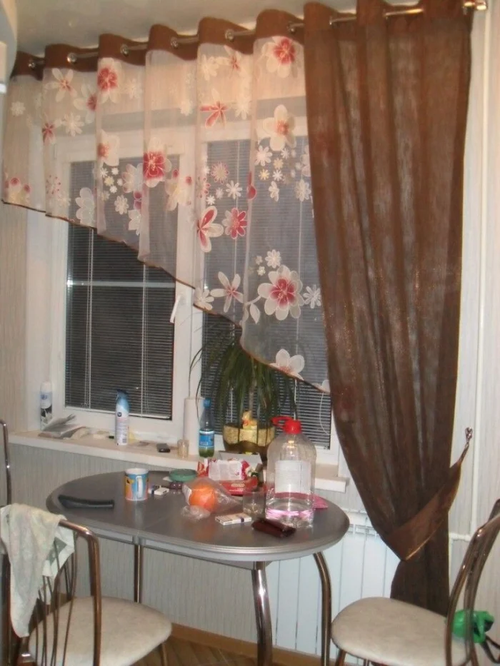 Главный принцип кухонного тюля — он должен легко сниматься для стирки. Никаких монументальных конструкций!