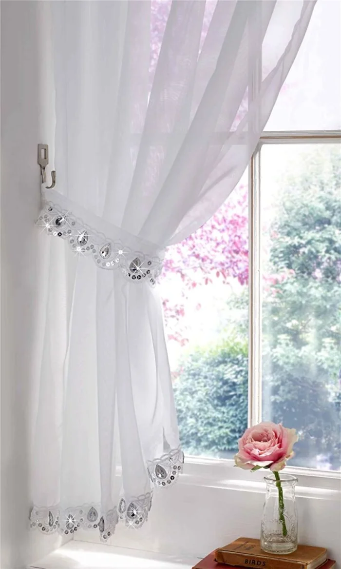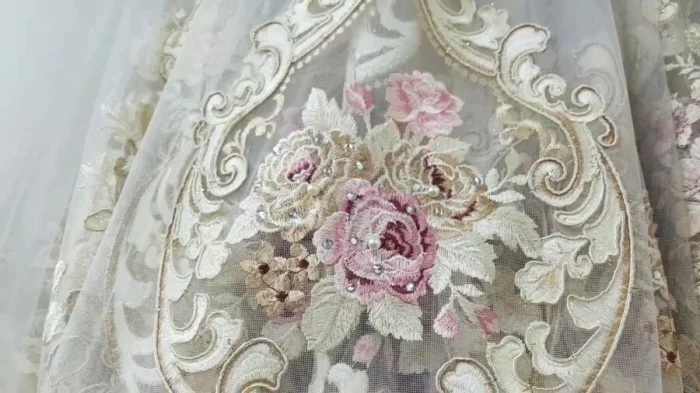 - Восточный стиль: Тюль с золотой или серебряной нитью (люрекс) добавит нужного лоска и таинственности.