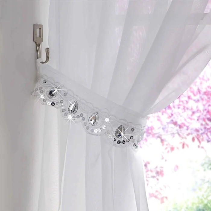 Для тонкого тюля проще всего купить готовую ленту с петлями. Для более плотного — можно смастерить декоративные петли или бантики из контрастной ткани. Это станет изюминкой!