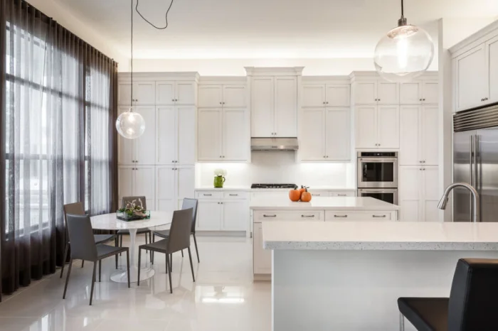 В просторных кухнях можно играть с двухслойными композициями и асимметричными формами. Вариантов — масса! Чтобы найти свой, просто посмотрите нашу галерею.