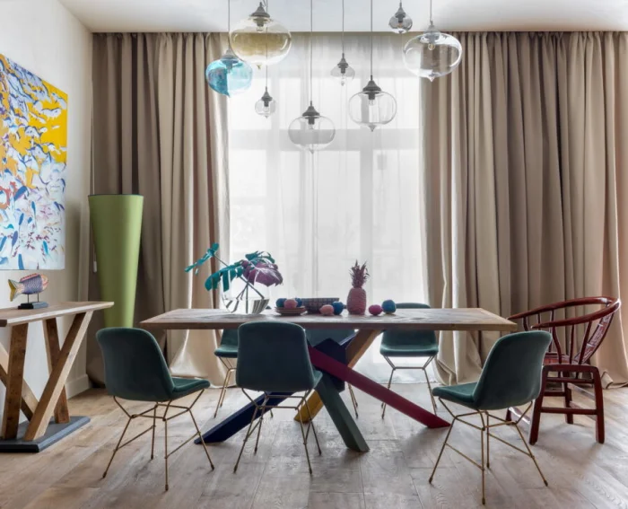 Не теряют актуальности французские шторы с мягкими фалдами и тюль-арка для стиля кантри. А скандинавский стиль, со свойственной ему любовью к чистым линиям и лаконичным оттенкам, по-прежнему на пике популярности.