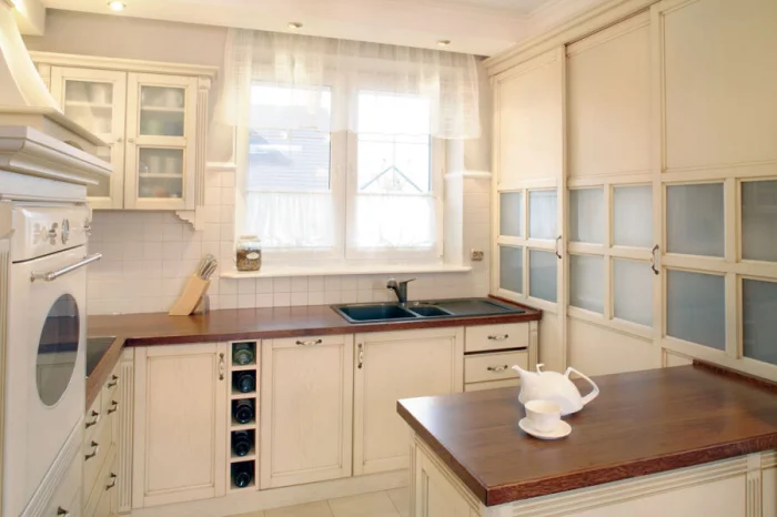 Размер кухни диктует свои правила. В тесном пространстве длинные, в пол, портьеры из тюля будут только «съедать» пространство и собирать пыль у пола. А вот короткая модель — до подоконника или до середины окна — ваш идеальный выбор. Она визуально разгрузит стену и сделает комнату светлее.