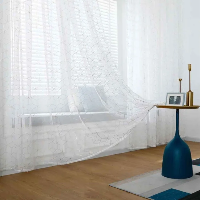Сейчас в моде тюль с персонализацией: вышитыми инициалами, геометрическими орнаментами, необычной фактурной выработкой полотна. Такие детали превращают обычную занавеску в арт-объект.