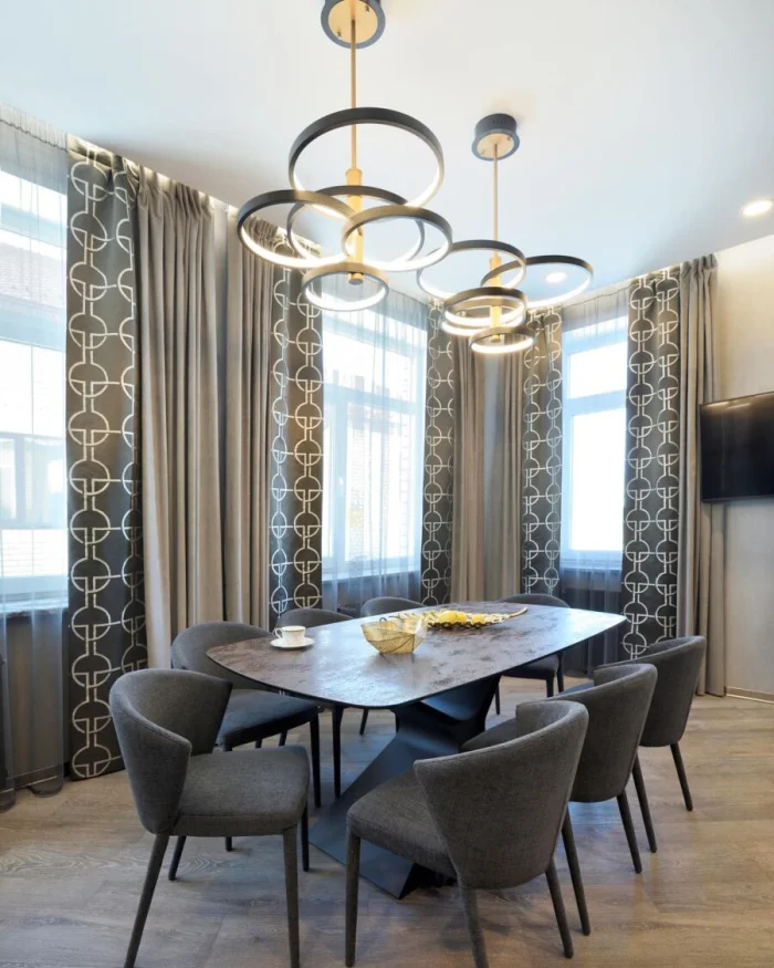 - Модерн: Вертикальные полосы, плавные геометрические линии. Четкость и элегантность.