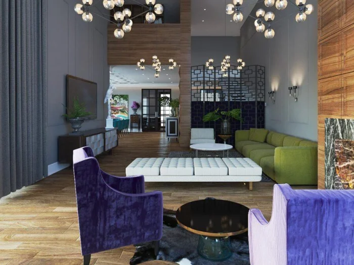 Смелый, скульптурный, театральный. Акцент, вокруг которого строится весь интерьер. Чаще встречается в стилях минимализм, хай-тек или в восточных мотивах. Требует большого зала и уверенности в собственном вкусе. Но уж если решились — равных по эффекту не найдёте.