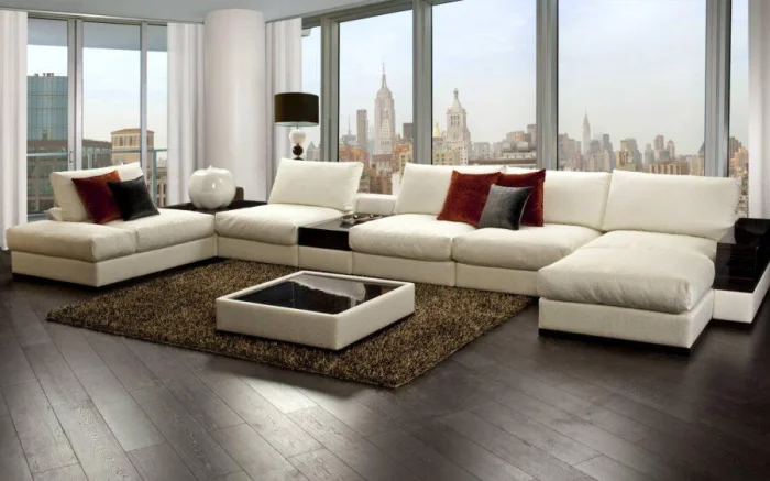 Царь современных гостиных. Многие модели теперь трансформируемые — можно менять сторону расположения угла. Требует простора, в тесной комнате будет смотреться громоздко. Но в помещении среднего размера создаёт невероятно удобную зону отдыха для всей семьи.